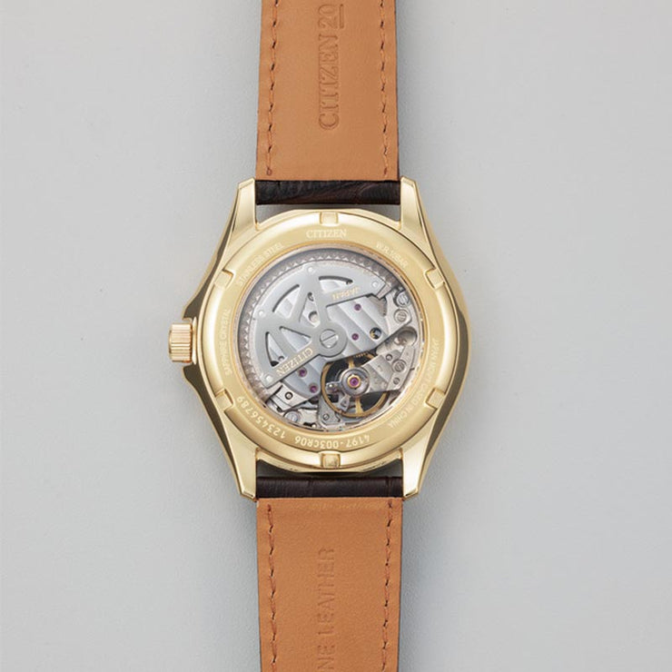 オープンハート文字板が人気のメカニカルモデルから、クラシカルな表情がきわだつ革バンド仕様が登場。文字板の7時位置から機械式時計の心臓部であるテンプの繊細な動きを堪能できます。裏ぶたは、回転する錘(おもり)とメカの動きを楽しめるシースルーバックを採用しています。
