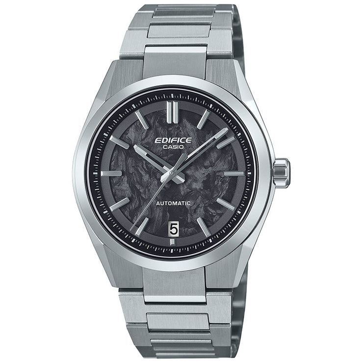 モータースポーツやクルマと時計の親和性を求めて挑戦し続けるEDIFICEから、フォージドカーボンを採用したメカニカル3針デイトモデルEFK-100XPBとEFK-100YCDをご紹介します。高級スポーツカーにも使用されるフォージドカーボンをEFK-100XPBにはケースと文字板、EFK-100YCDには文字板に採用することで更なるパフォーマンスを求めて進化を続けるラグジュアリーなスポーツカーの世界観をEDIFICEらしいスタイリングで表現しました。フォージドカーボンは炭素繊維を樹脂で固め高温高圧で成形した複合素材で、金属に比べて軽量と高剛性ゆえ走行性能を求めるスポーツカーに採用される素材です。心臓部にもクルマのようにエモーショナルな駆動方式を取り入れるべく、カシオで初となるメカニカルムーブメントを搭載。シースルーバックからムーブメントの動きを見ることができ、機械式ならではの魅力をお楽しみいただけます。EFK-100シリーズ全てにサファイアガラスを装備。EFK-100XPBには三つ折れ式中留付きの樹脂バンド、EFK-100YCDにはムクのステンレススチールバンドを採用しました。クルマを愛するエンスージアストに。
