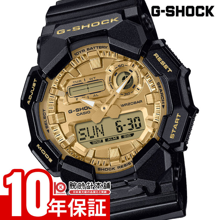 タフネスを追求し進化を続けるG-SHOCKから、Black and Gold Seriesのご紹介です。G-SHOCKらしい武骨なオールブラックのボディに、エネルギッシュに輝くゴールドをカラーリングしています。GD-010GB-1A9JFは文字板に、GA-010GB-1A9JFはインデックスにそれぞれゴールド蒸着を施し、ビッグフェイスデザインを一層際立たせています。ボディ全体をブラックで締めた中に随所に施した蒸着の質感があいまって、煌びやかでクールなデザインに仕上がりました。GA-010GGB-1A9JFとGA-100GGB-1A9JFは、文字板にゴールド蒸着を施し、液晶部にはゴールド液晶を採用し、フェイス部にゴールドを全面的に使用したモデルとなっています。最新のテクノロジーと高いデザイン性を兼ね備えた、G-SHOCKです。