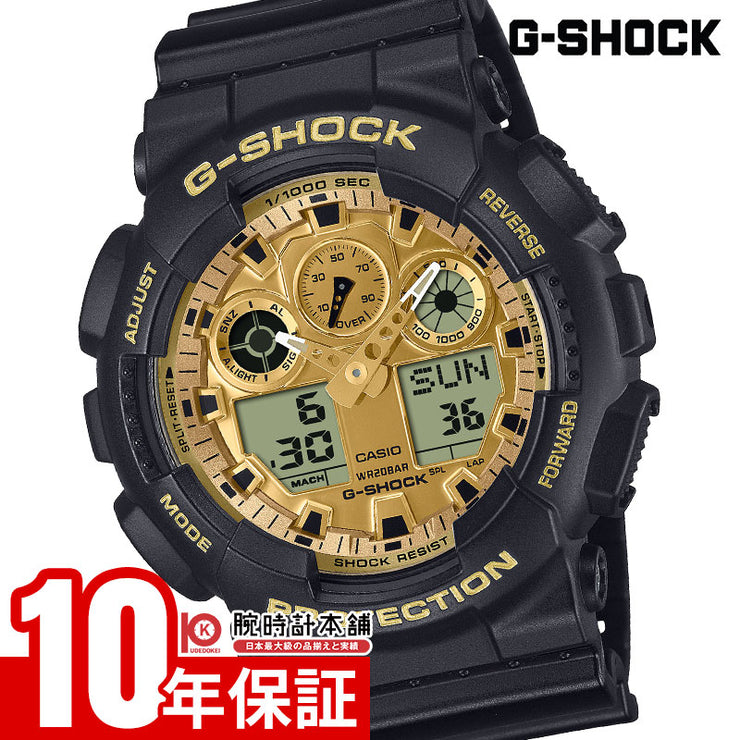 タフネスを追求し進化を続けるG-SHOCKから、Black and Gold Seriesのご紹介です。G-SHOCKらしい武骨なオールブラックのボディに、エネルギッシュに輝くゴールドをカラーリングしています。GD-010GB-1A9JFは文字板に、GA-010GB-1A9JFはインデックスにそれぞれゴールド蒸着を施し、ビッグフェイスデザインを一層際立たせています。ボディ全体をブラックで締めた中に随所に施した蒸着の質感があいまって、煌びやかでクールなデザインに仕上がりました。GA-010GGB-1A9JFとGA-100GGB-1A9JFは、文字板にゴールド蒸着を施し、液晶部にはゴールド液晶を採用し、フェイス部にゴールドを全面的に使用したモデルとなっています。最新のテクノロジーと高いデザイン性を兼ね備えた、G-SHOCKです。