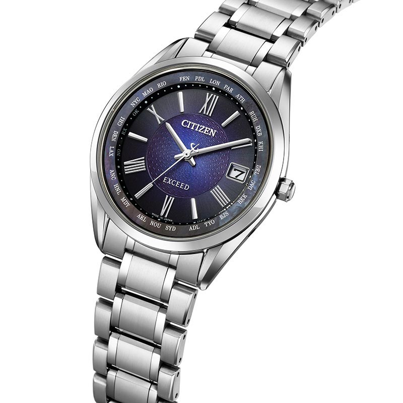 確かな品質と洗練されたデザイン。大人のためのドレスウオッチ、シチズン EXCEED(エクシード)。見返しリングに新しい表現手法である黒染め貝を採用。「Nebula(星雲)」をテーマにした文字板が、ミステリアスな輝きを放ちます。デザインのテーマは「Nebula(星雲)」。見返しリングに黒染め貝を採用し、同じ模様が二つとない個性的な質感とミステリアスな輝きを生かした限定モデルです。厚み7.9mm(設計値)のケースで5気圧防水を実現。薄型と高機能を両立しています。ローマ数字のインデックスがエレガントな雰囲気を漂わせます。インクジェットのグラデーションパターンを用いて夜空と星雲のつながりを表現しました。