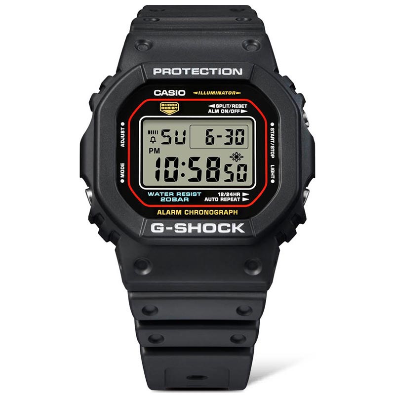 時代と共に進化し続け、世界中のファッショニスタやアスリートから愛されているIconic Stylesに初代G-SHOCKカラーのモデルが登場。オリジナルモデルで採用されていた、G-SHOCKのブランドカラーでもあり挑戦し続ける情熱を意味する赤色、高い防水性を表す青色、ショックレジスタントを意味する黄色を忠実に再現しています。5600 Style:初代モデルのデザインを受け継ぐロングセラーモデル。 DW5600RL1JF