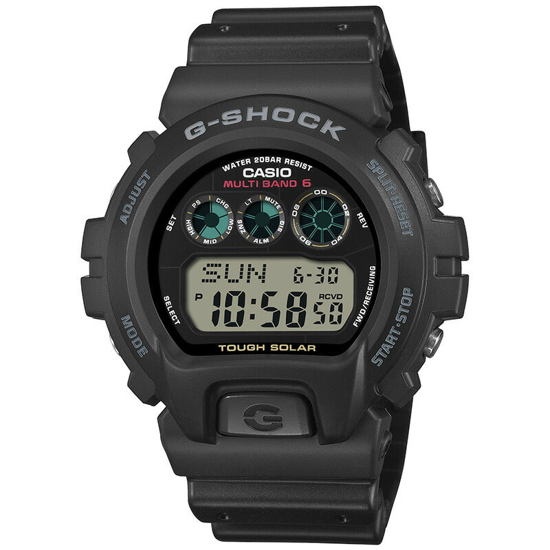 様々なコラボレーションモデルに採用され、ストリートファッションなどで人気のDW-6900に世界6局の標準電波を受信するマルチバンド6を搭載した人気モデルです。蛍光灯のわずかな光で駆動し、日本(2局)、中国、アメリカ、イギリス、ドイツの6局の標準電波を受信します。また、高輝度なフルオートLEDバックライトを搭載することで暗所での視認性も確保しています。シンプルなカラーリングで、ベーシックなデザインに仕上げています。