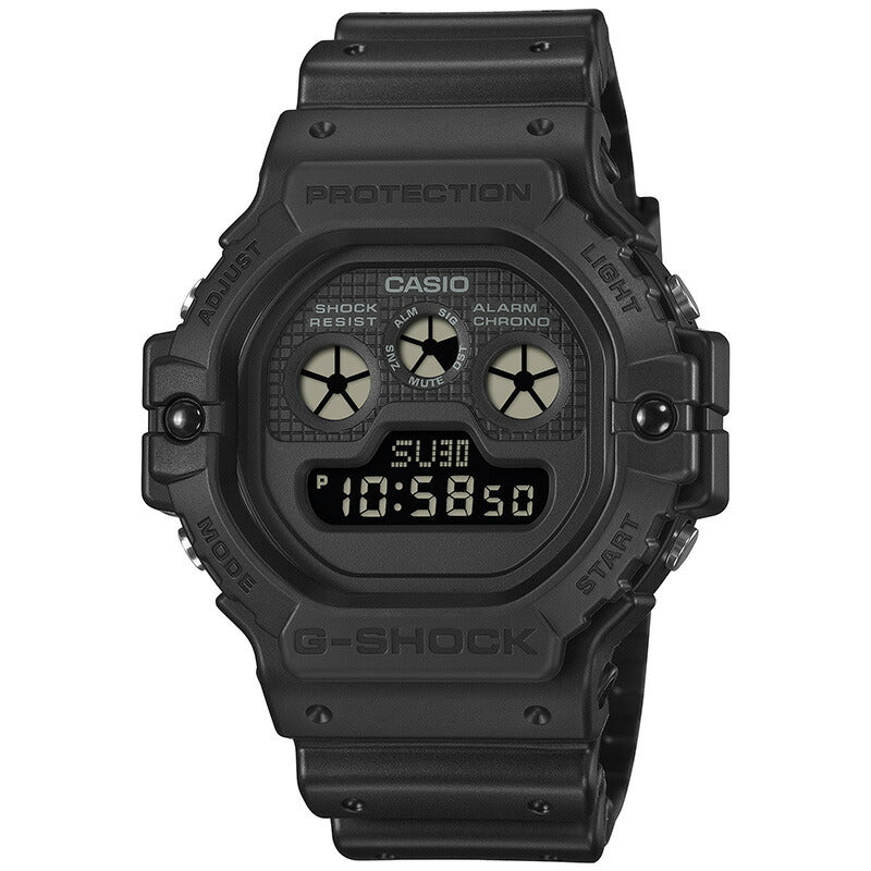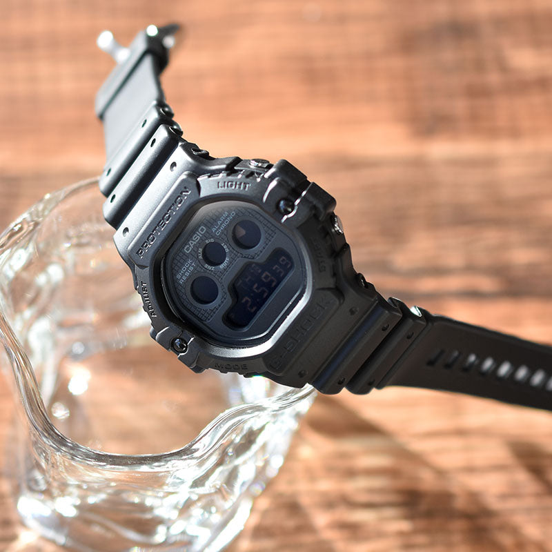究極のタフネスを追求し歴史を積み重ねてきたG-SHOCKから、1990年代に人気を博したクラシックG-SHOCKがマットな質感のオールブラックモデルとしてラインアップ。ベースモデルにはリバイバルを果たしたDW-5900を採用。ストリートからモード、スポーツシーンまで様々なスタイルに合う汎用性の高いモデルです。また、基本スペックであるストップウオッチ、タイマーに加え、バックライトには高輝度なLEDバックライト、電池寿命約10年のロングライフスペックなど実用的な機能を備えています。