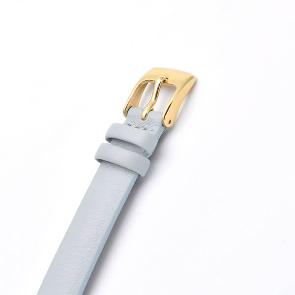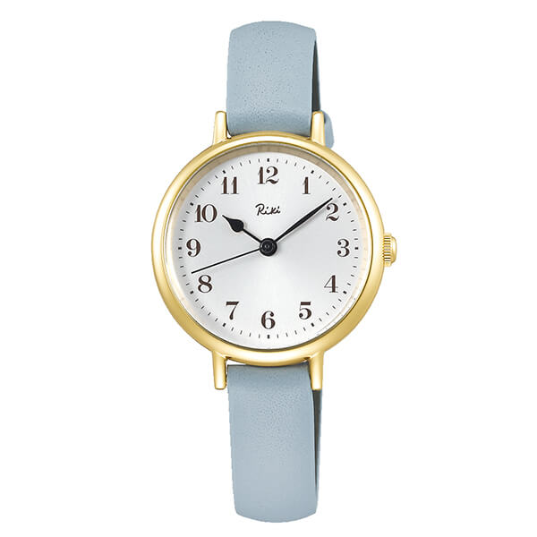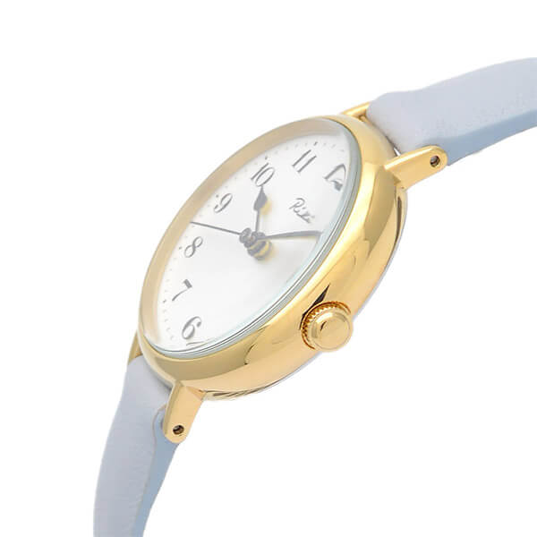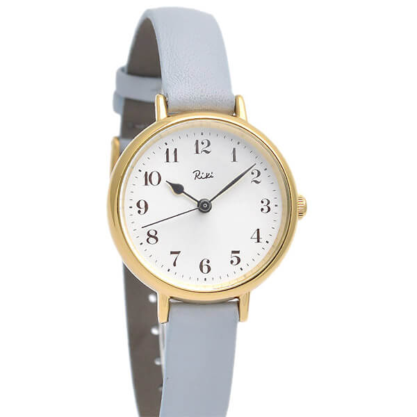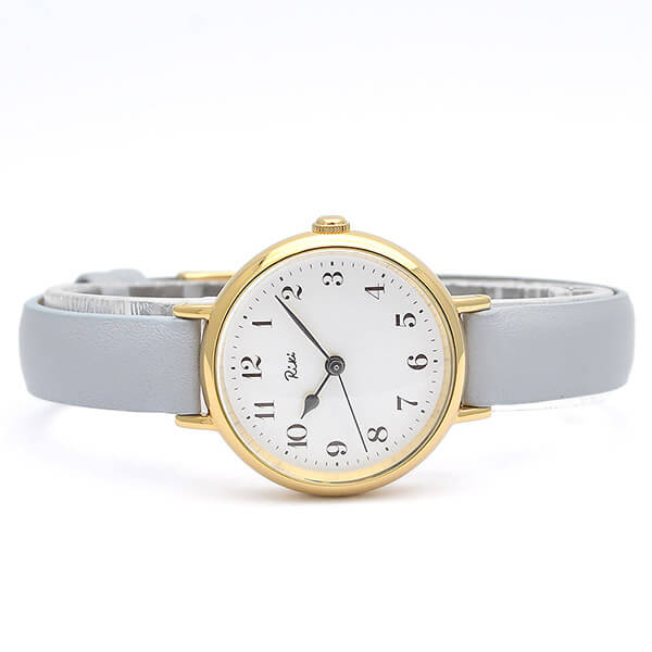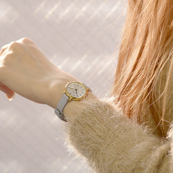 デザイナー渡辺力の作品「マリン・クロック」のアラビア数字を基本にしたダイアルで、シンプルで視認性の良いクラシカルな時計に仕上がっています。レザーバンドのカラーは日本の伝統色「白菫色(しろすみれいろ)」。淡い柔らかな色合いで腕なじみばっちりです。