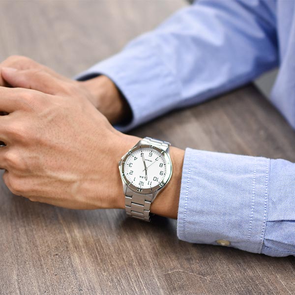 低価格で買うことができるメタルモデルです。視認性の良さと10気圧防水で実用性もばっちりです。
