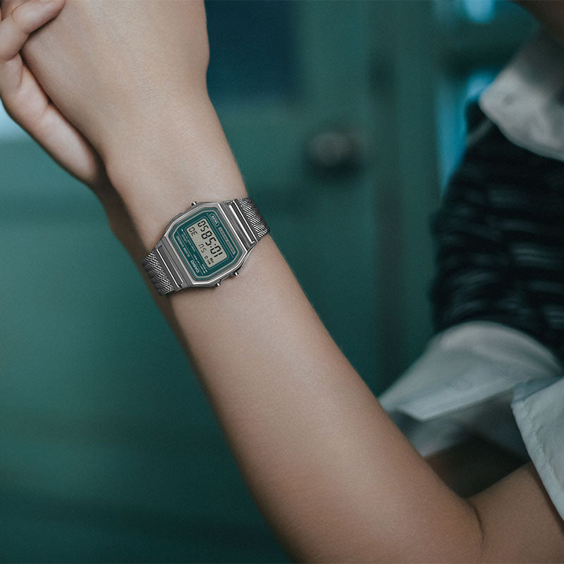 使い勝手の良さで根強い人気を誇るデジタルウオッチ、A158と、角型フェイスにアナログ時計とデジタル表示を組み合わせたAQ230を、メッシュバンド仕様に仕立てたスタイリッシュなウオッチです。メッシュバンドをベースに縦方向にプレスを入れ、立体感のあるデザインを実現しました。腕元に洗練された印象を添えつつ、快適な装着感を実現します。A158のカラーバリエーションは、シルバーケース×ダークグリーンダイアルとシルバーケース×ライトグレーダイアルの2種類。どちらもシンプルでありながら、個性的なスタイルを演出します。AQ-230のカラーバリエーションは、シルバーケース×ネイビーダイアルとシルバーケース×シルバーダイアルの2種類。クラシカルなデザインに新しいメッシュバンドが加わり、さらに魅力的なスタイルを楽しめます。編み込まれた金属の美しさが、スタイルに存在感を添えるウオッチです。
