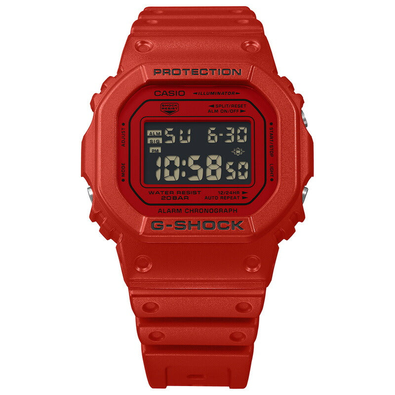 時代と共に進化し続け、世界中のファッショニスタやアスリートに愛されているG-SHOCKから、ブランドカラーである赤にこだわったIconic Stylesのモデルをご紹介します。初代モデルのデザインを受け継ぐロングセラーモデル時計のフェイスに施された赤の色合いがバンドやベゼルと調和し、力強く質感のコントラストが印象的なデザインに仕上がっています。液晶には反転液晶を採用し、各所にブラックカラーを取り入れることでデザイン性を高めています。ブラックのアクセントカラーが赤を引き立て、強さとインパクトを与え、G-SHOCKのアイデンティティを表現しています。ストリートファッションにも最適で、カジュアルなスタイリングのアクセントとして活用しやすいモデルです。